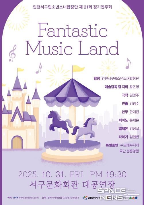 스페이스뉴스 스페이스뉴스 기자 | 인천서구립소년소녀합창단이 오는 10월 31일 오후 7시 30분, 서구문화회관 대공연장에서 제21회 정기연주회 ‘Fantastic Music Land’를 개최한다.