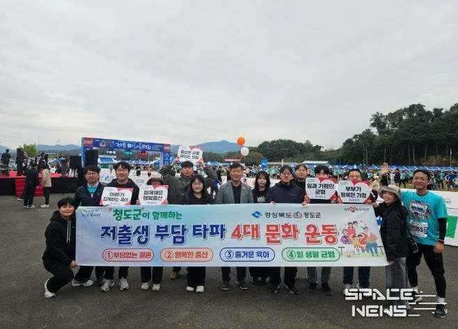 스페이스뉴스 스페이스뉴스 기자 | 청도군은 지난 26일 열린 ‘청도 반시 전국 마라톤 대회’ 현장에서 군민들과 전국 각지에서 모인 참가자들을 대상으로 저출산 부담 타파 4대 문화운동을 알리고 홍보하며 동참을 이끌었다.