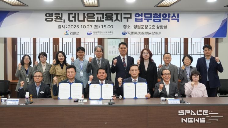 스페이스뉴스 스페이스뉴스 기자 | 강원특별자치도교육청은 영월군청(군수 최명서), 영월교육지원청과 10월 27일 영월군청에서 ‘영월 더나은교육지구 연장지정 업무협약’을 체결했다.