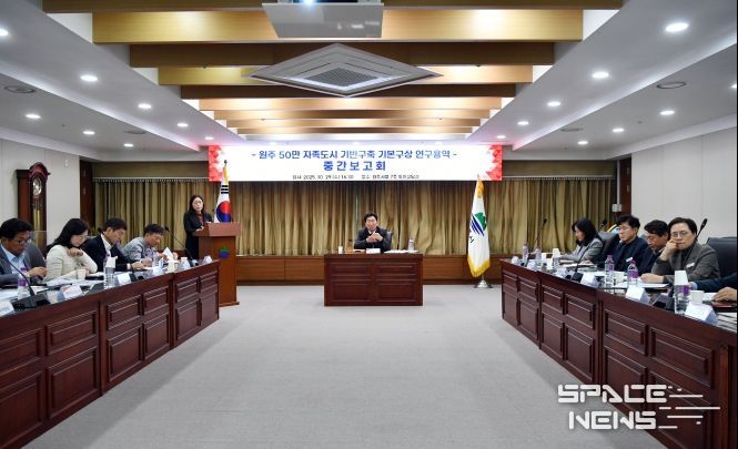 스페이스뉴스 스페이스뉴스 기자 | 원주시는 29일 시청 7층 투자상담실에서 ‘원주 50만 자족도시 기반구축 기본구상 연구용역’ 중간보고회를 개최했다.