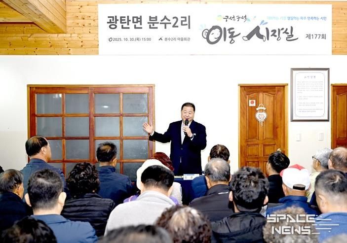 스페이스뉴스 스페이스뉴스 기자 | 파주시 광탄면은 지난 30일 광탄면 분수2리 마을회관에서 ‘제177회 이동시장실’을 개최했다고 밝혔다.