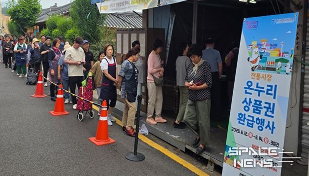 스페이스뉴스 스페이스뉴스 기자 | 부산시는 '전통시장 온누리상품권 환급행사'를 오는 11월 6일부터 8일까지 3일간 오후 1시 30분부터 5시 30분까지 부산 100개 전통시장(87개 환급장소)에서 개최한다고 밝혔다.