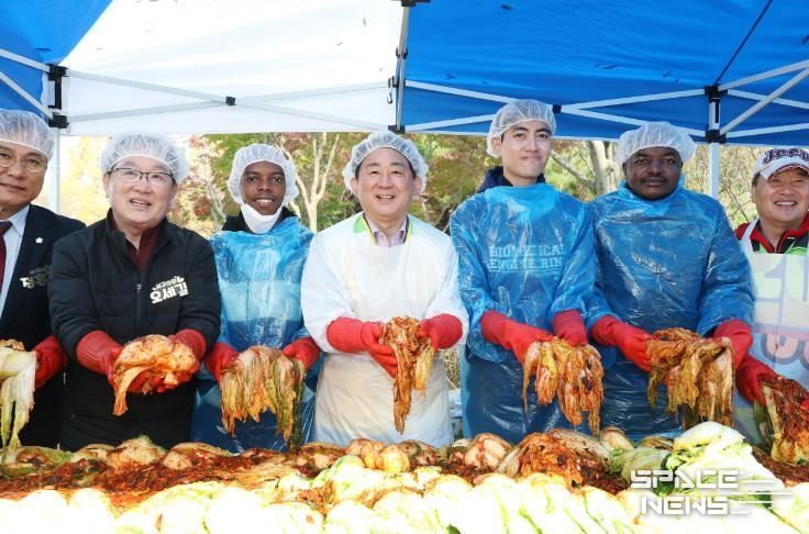 스페이스뉴스 스페이스뉴스 기자 | 대전 서구는 6일 둔산동 샘머리공원에서 열린 서구 자원봉사센터 주최‘함께하는 기쁨, 사랑 가득 김장 나눔’ 행사에 배재대학교 유학생인 정부 초청 외국인 장학생 30명이 참여했다고 전했다.