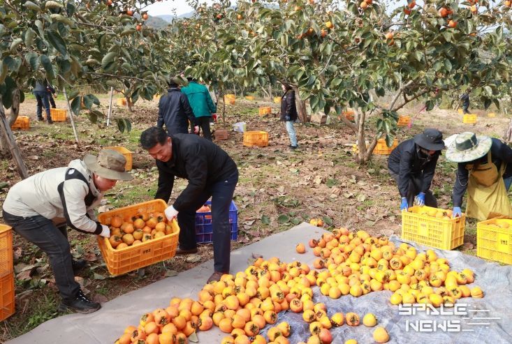 의령군 공무원 300여 명은 단감·대봉감 농가 15여 농가(20ha)에 투입돼 수확에 힘을 보탰다.