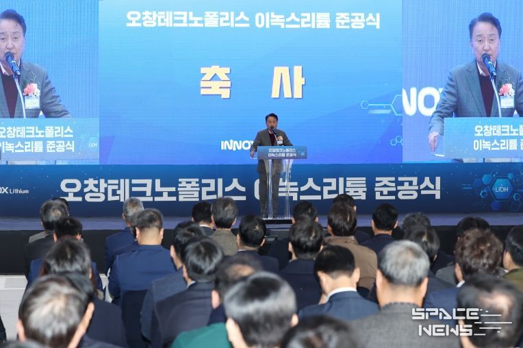 스페이스뉴스 스페이스뉴스 기자 | ㈜이녹스리튬은 11일 청주 오창테크노폴리스 산업단지에서 이녹스리튬 오창공장 준공식을 개최했다. 이날 준공식에는 김경훈 이녹스리튬 대표이사, 장경호 이녹스 회장, 김영환 충북도지사, 신병대 청주부시장 등 150여 명이 참석했다.