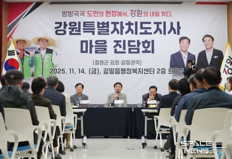 스페이스뉴스 스페이스뉴스 기자 | 김진태 강원특별자치도지사는 '강원특별법' 군사특례를 활용한 첫 권한 행사로 지난 3월 군사규제 개선 성과를 거둔 철원군을 11월 14일 방문해 도지사 ‘마을진담회’(진솔한 +간담회)의 네 번째 자리를 마련했다.