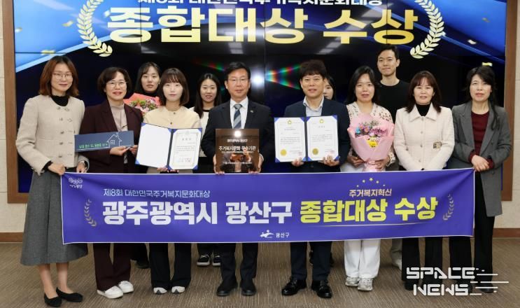 스페이스뉴스 스페이스뉴스 기자 | 광주 광산구가 지난 20일 전국 최초 ‘살던집 프로젝트’ 등 시민 삶을 바꾼 주거복지를 구현한 정책 성과로 ‘제8회 대한민국 주거복지문화대상’에서 영예의 종합대상을 받았다.