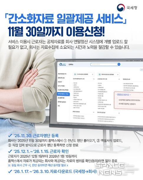 스페이스뉴스 기자 | 「간소화자료 일괄제공 서비스」 11월 30일까지 이용신청!