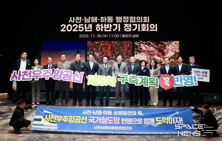 스페이스뉴스 스페이스뉴스 기자 | 사천시, 남해군, 하동군이 참여하는 ‘사천-남해-하동 행정협의회’가 11월 26일 쏠비치 남해 밀라노홀에서 2025년 하반기 정기회의를 개최했다.