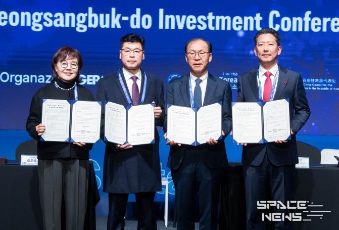 스페이스뉴스 스페이스뉴스 기자 | 구미시는 11월 27일 그랜드 인터컨티넨탈 서울 파르나스에서 ㈜코람코자산운용 김태원 대표, ㈜호암글로벌 이우호 대표를 비롯하여 이철우 경상북도지사, 김장호 구미시장이 참석한 가운데 구미 산단 내 브랜드호텔 건립과 운영을 위한 4자 간 투자양해각서(MOU) 체결식을 개최했다.