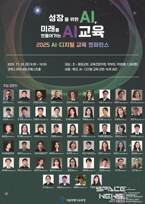 스페이스뉴스 스페이스뉴스 기자 | 서울특별시교육청(교육감 정근식)은 AI 시대 학습자의 성장을 체계적으로 지원하고, 공교육이 나아가야 할 미래교육의 방향을 모색하기 위해 '2025 AI·디지털 교육 컨퍼런스'를 11월 29일 마곡 코엑스에서 개최한다.