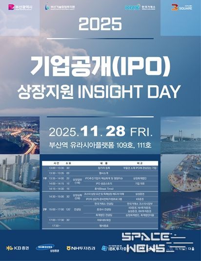 스페이스뉴스 스페이스뉴스 기자 | 부산시와 부산기술창업투자원은 한국거래소와 함께 28일 오후 1시 부산역 유라시아플랫폼에서 지역에서 처음으로 '2025년 기업공개(IPO, Initial Public Offering) 상장 지원 인사이트 데이(INSIGHT DAY)'를 개최한다고 밝혔다.