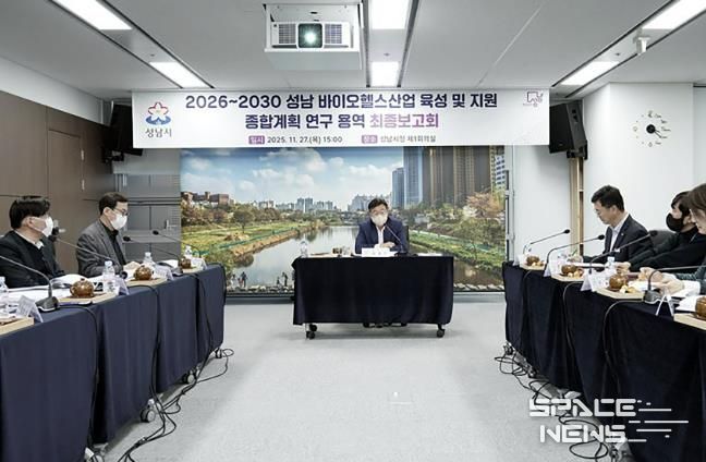 스페이스뉴스 스페이스뉴스 기자 | 성남시는 27일 시청 제1회의실에서 ‘2026~2030년 성남 바이오헬스 육성 및 지원 종합계획 수립 연구용역 결과보고회’를 개최했다.