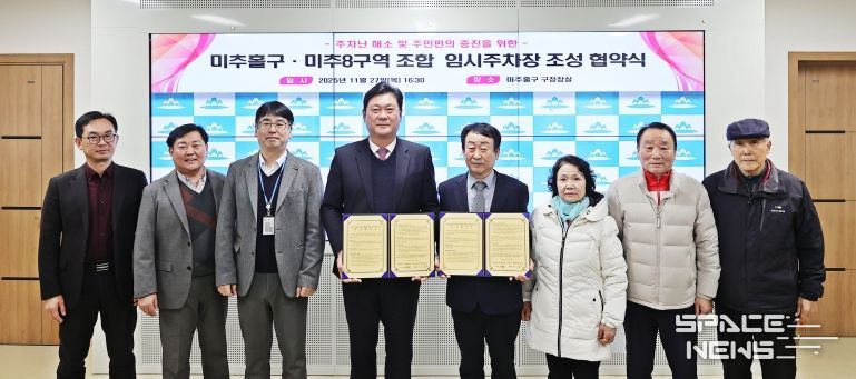 스페이스뉴스 스페이스뉴스 기자 | 인천 미추홀구는 지난 27일 구청장실에서 미추8구역 주택재개발정비사업 조합과 ‘임시주차장 조성 협약’을 체결했다.