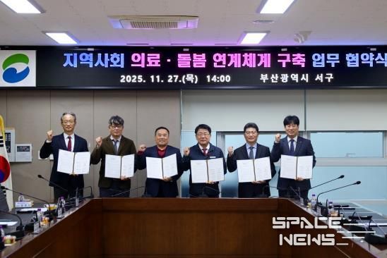 스페이스뉴스 스페이스뉴스 기자 | 부산 서구는'돌봄통합지원법' 시행에 맞춰, 의료·요양·돌봄 통합지원 기반을 조성하고자 지난 27일 △국민건강보험공단 부산서부지사, △고신대학교 복음병원, △동아대학교병원, △부산대학교병원, △삼육부산병원과 업무협약(MOU)을 체결했다.