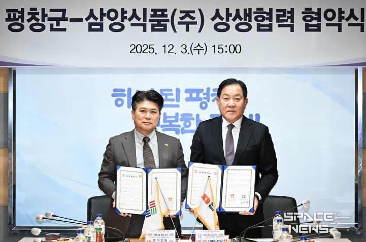 스페이스뉴스 스페이스뉴스 기자 | 평창군과 삼양식품은 지방 소멸 위기에 대응하고 지속 가능한 지역 성장 기반을 마련하기 위해 ‘지방 살리기 상생 자매결연’ 업무협약을 체결했다.