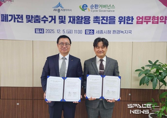 스페이스뉴스 스페이스뉴스 기자 | 세종특별자치시가 5일 시청에서 E-순환거버넌스와 폐가전 맞춤 수거 및 재활용 촉진을 위한 업무협약을 체결했다.