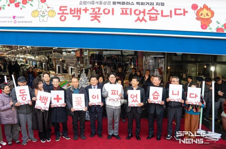 스페이스뉴스 스페이스뉴스 기자 | 부산 동구 초량전통시장의 초량이음자율상권이 부산동백전 동백플러스 특화거리로 지정됨에 따라 이를 기념하는 행사 '동백+꽃이 피었습니다'가 열렸다.