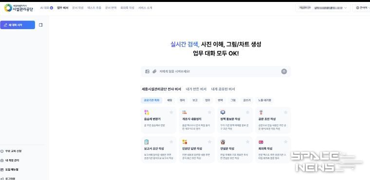 스페이스뉴스 스페이스뉴스 기자 | 세종특별자치시시설관리공단은 챗GPT, 제미나이 등 다양한 생성형 인공지능 프로그램을 하나의 환경에서 활용할 수 있는 인공지능 통합 플랫폼을 도입해 지능형 업무 환경 구축에 나선다고 밝혔다.