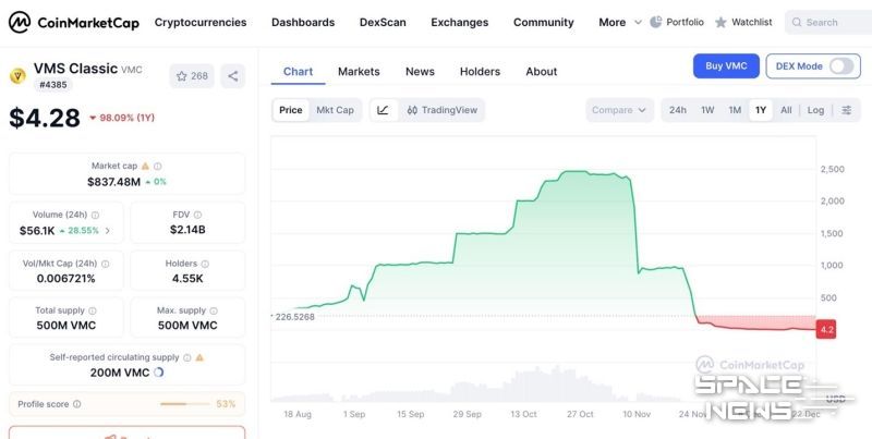 출금정지처분의 결정적 요인은 자체 발행한 VMC 코인이 불법매도된 사건이다. 2025년7월에 최초 미국 거래소인 Bitmart 에 상장한 VMC 는 상장가 $10을 시작으로 높은 상장 시작가임에도 불구하고 2개월만에 $600 대를 돌파했다. 사건이 터지기 11월4일 전까지는 $2,400 까지 넘어서는 놀라운 기록을 보였지만 결국 불법매도가 시작된 LBank 가 빅토리아 거래소를 금융당국에 신고하면서 현재는 상장가 미만으로 가격이 폭락하게 되는 희대의 사건으로 전락하고 말았다.