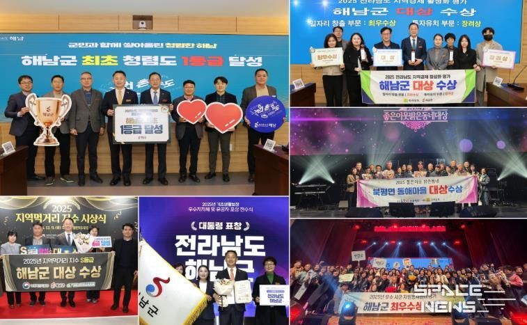 스페이스뉴스 스페이스뉴스 기자 | 해남군이 2025년 한 해 동안 총 110건의 기관표창을 수상하며 역대 최다 수상 기록을 달성했다.