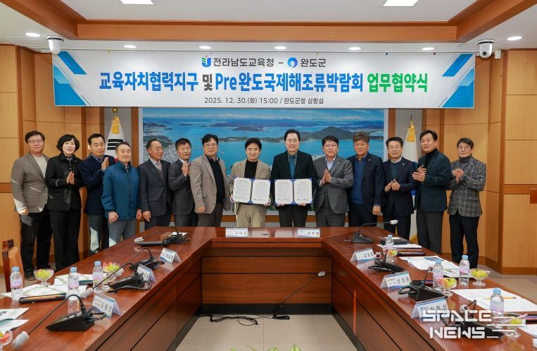 스페이스뉴스 스페이스뉴스 기자 | 완도군은 지난해 12월 30일 전라남도교육청과 교육자치협력지구의 원활한 사업 운영과 2026 Pre완도국제해조류박람회 협력 체계 구축을 위한 업무 협약을 체결했다.