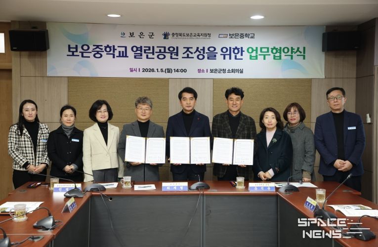 최재형 보은군수는 “이번 협약은 학교와 지역이 함께 공간을 만들어가는 의미 있는 출발점”이라며 “보은중학교 열린공원이 학생과 지역 주민 모두가 편하게 이용하는 생활 밀착형 녹지 공간으로 자리 잡을 수 있도록 적극 지원하겠다”고 말했다.