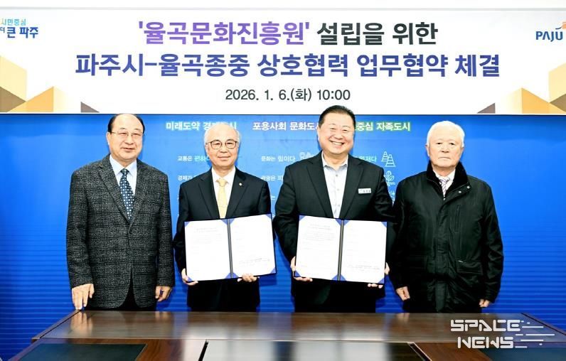 스페이스뉴스 스페이스뉴스 기자 | 파주시가 율곡 이이 선생의 학문과 철학을 체계적으로 계승하기 위해 추진 중인 ‘율곡문화진흥원’설립을 위해 지난 6일 율곡 선생의 후손인 덕수 이씨 종중과 업무협약을 체결했다.