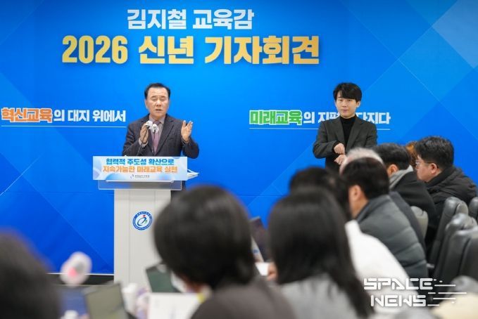 스페이스뉴스 스페이스뉴스 기자 | 김지철 충남교육감은 8일, 도교육청 회의실에서 ‘2026 신년 기자회견’을 열고, ‘2025년 주요 성과와 2026년 12대 중점 추진 과제’를 발표했다.