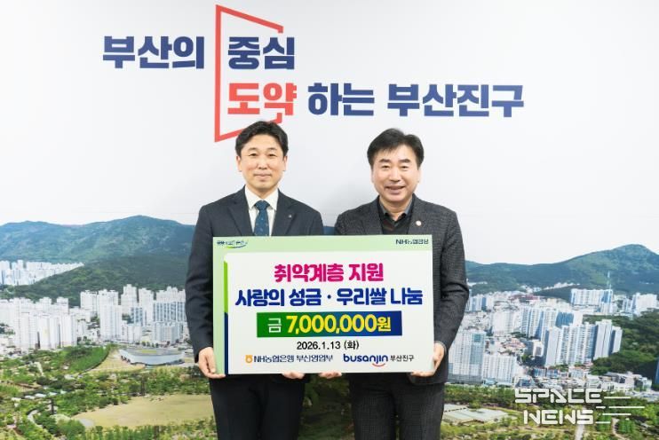 스페이스뉴스 스페이스뉴스 기자 | 부산진구는 지난 1월 13일, 구청 소회의실에서 NH농협은행 부산본부(본부장 정민규)와 함께 ‘연말연시 이웃돕기 성금 전달식’을 개최했다고 밝혔다.
