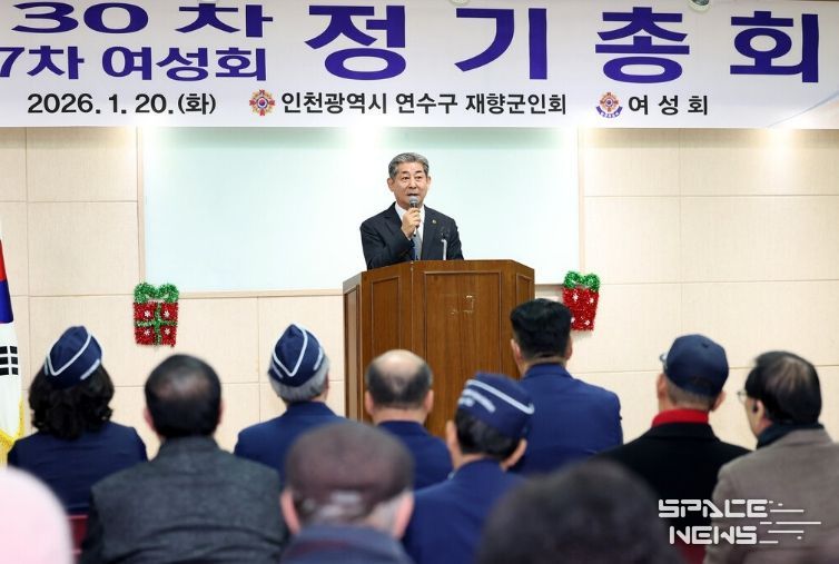 스페이스뉴스 스페이스뉴스 기자 | 인천광역시의회 정해권 의장(국·연수구1)은 20일 인천시 연수구 보훈회관에서 열린 ‘2026년 제30차 연수구 재향군인회 및 제27차 연수구 재향군인회 여성회 정기총회’에 참석해 회원들을 격려했다.