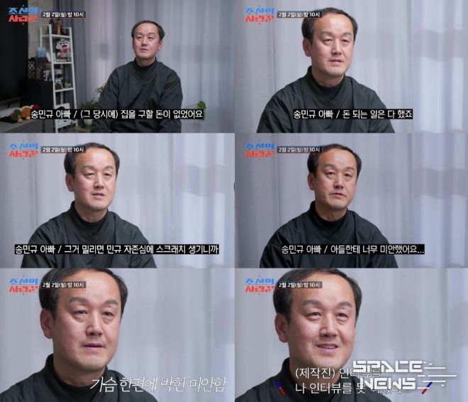 스페이스뉴스 스페이스뉴스 기자 | TV CHOSUN 극사실주의 다큐 예능 ‘조선의 사랑꾼’에서 '국대 출신' 축구선수 송민규의 아버지가 아들의 결혼식에 앞서 가난했던 과거를 회상한다.