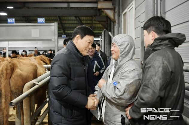 스페이스뉴스 스페이스뉴스 기자 | 담양군은 지난 1일 이른 아침 담양읍 만성리에 소재한 가축시장을 방문해 한우 가격동향 및 경매 진행 상황을 살펴보고 축산농가의 애로사항을 청취했다.