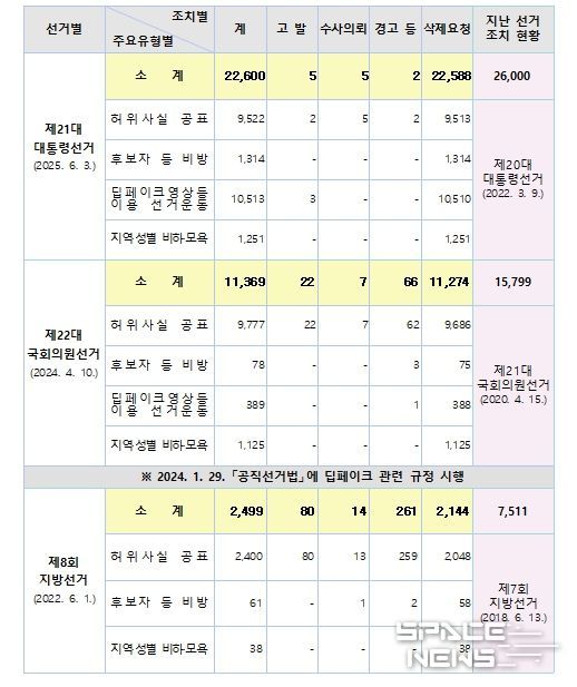 중앙선관위는 딥페이크 제작물이나 허위사실공표·비방 행위는 후보자에게 회복하기 어려운 피해를 줄 수 있고 유권자의 판단을 왜곡하여 선거결과에 영향을 미칠 수 있다면서, 깨끗한 사이버선거문화 조성을 위해 관계기관 등의 적극적인 협조를 요청했다.
