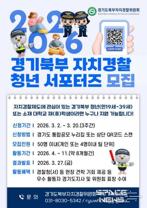 스페이스뉴스 스페이스뉴스 기자 | 경기도북부자치경찰위원회는 자치경찰제에 대한 청년층의 관심을 높이고 현장 중심 치안 활동을 함께할 ‘2026 경기북부 자치경찰 청년 서포터즈’를 3월 2일부터 20일까지 공개 모집한다.
