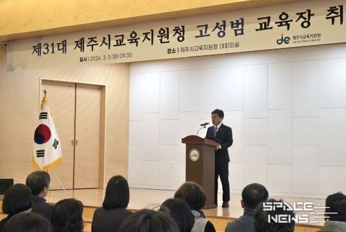 스페이스뉴스 스페이스뉴스 기자 | 제주시교육지원청은 3일 별관 대회의실에서 제31대 고성범 제주시교육지원청 교육장의 취임식을 개최했다.