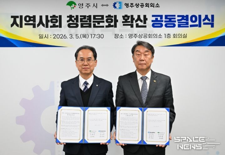 스페이스뉴스 스페이스뉴스 기자 | 영주시는 지난 5일 영주상공회의소와 함께 '지역사회 청렴문화 확산 공동결의식'을 개최하고, 민·관이 함께 청렴 실천 의지를 다졌다.