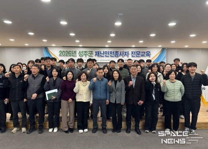 스페이스뉴스 스페이스뉴스 기자 | 성주군은 3월 5일, 군청 문화강좌실에서 재난 상황에서 핵심적인 역할을 수행할 재난안전대책본부 13개 실무반과 위기관리 매뉴얼 관리 부서 관리자 및 실무자 56명을 대상으로 ‘재난안전분야 종사자 전문교육’을 실시했다.