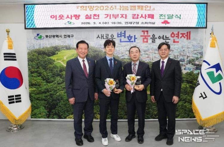 스페이스뉴스 스페이스뉴스 기자 | 연제구는 지난 3월 4일, 부산사회복지공동모금회(회장 이수태)와 함께 '희망2026나눔캠페인 이웃사랑 실천 기부자'에게 감사패를 전달했다.