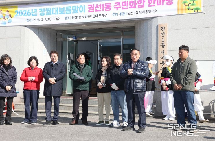 스페이스뉴스 스페이스뉴스 기자 | 수원특례시의회는 7일 권선1동 행정복지센터 주차장에서 열린 '2026 권선1동 정월대보름 척사대회'에 참석해 주민들과 함께 전통 명절의 의미를 나누며 지역 공동체 화합의 시간을 가졌다.