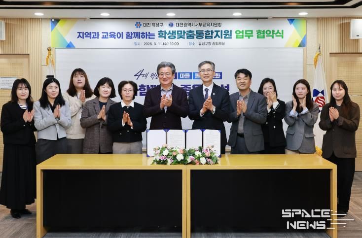 스페이스뉴스 스페이스뉴스 기자 | 대전 유성구는 11일 유성구청 중회의실에서 대전서부교육지원청과 교육 취약 학생의 건강한 성장을 지원하기 위한 업무 협약을 체결했다.