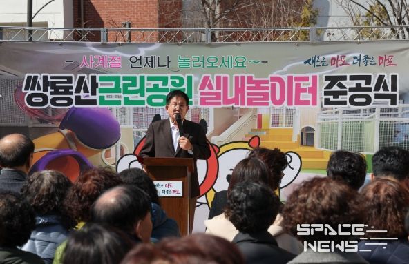 스페이스뉴스 스페이스뉴스 기자 | 박강수 마포구청장은 3월 13일 오후 1시 30분, 쌍룡산근린공원(염리동 532-5)에서 열린 ‘쌍룡산근린공원 실내놀이터 조성사업 준공식’에 참석해 어린이와 가족을 위한 새로운 놀이공간의 조성을 축하했다.