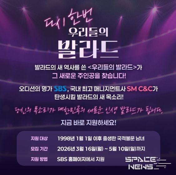 스페이스뉴스 스페이스뉴스 기자 | 시즌2로 돌아오는 SBS ‘우리들의 발라드’가 발라드 신화를 이을 새로운 목소리를 찾는다.