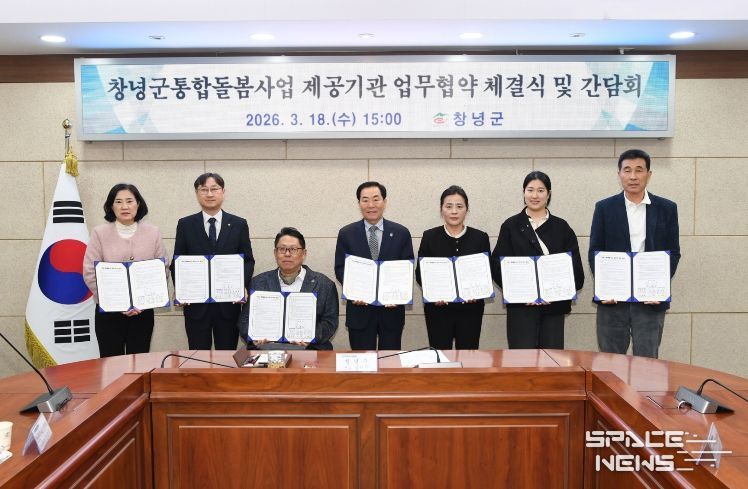 스페이스뉴스 스페이스뉴스 기자 | 창녕군은 18일 군정회의실에서 의료·요양 등 통합돌봄 서비스의 안정적 제공과 협력체계 구축을 위해 통합돌봄 제공기관 6개소 대표자가 참석한 가운데 업무협약을 체결하고 간담회를 개최했다.