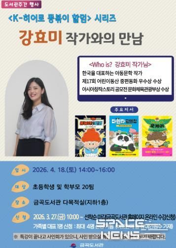 스페이스뉴스 스페이스뉴스 기자 | 부산 북구는 제62회 도서관주간을 맞아 4월 18일 오후 2시, 금곡도서관에서 인기 동화 'K-히어로 똥볶이 할멈'의 저자 강효미 작가를 초청해 ‘작가와의 만남’을 개최한다고 밝혔다.