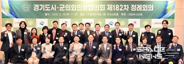 스페이스뉴스 스페이스뉴스 기자 | 경기도 31개 시·군의회 의장들이 한자리에 모여 지방자치 발전을 위한 협력 방안을 논의하는 경기도시·군의회의장협의회 제182차 정례회의가 3월 19일, 의정부시 아일랜드캐슬에서 개최됐다.