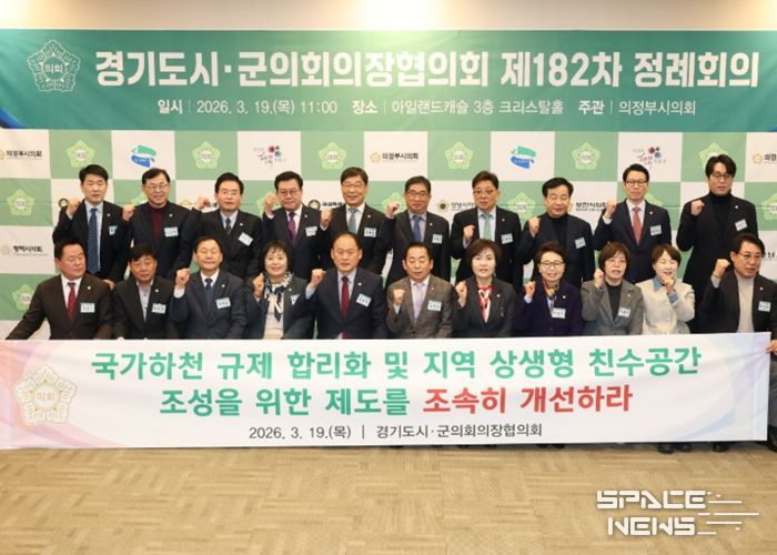 스페이스뉴스 스페이스뉴스 기자 | 경기도시군의회의장협의회 회장인 동두천시의회 김승호 의장이 제안한 '국가하천 규제 합리화 및 지역 상생형 친수공간 조성을 위한 제도 개선 촉구 건의안'이 19일 의정부 아일랜드캐슬에서 열린 제182차 정례회의에서 만장일치로 채택됐다.