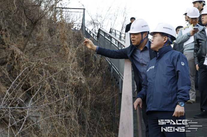스페이스뉴스 스페이스뉴스 기자 | 진교훈 서울 강서구청장이 20일 해빙기 안전사고 예방을 위해 직접 급경사지 안전점검에 나섰다.