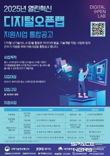 스페이스뉴스 스페이스뉴스 기자 | 경기도가 ‘2026년 열린혁신 디지털 오픈랩 운영 사업’을 추진하는 가운데, 오는 4월 9일까지 ‘디바이스 인공지능 전환(AX) 기술 고도화 지원사업’에 참여할 도내 중소기업과 스타트업을 모집한다.