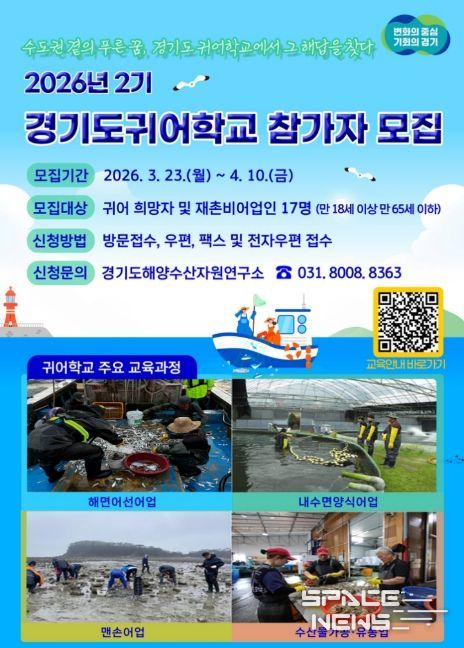 스페이스뉴스 스페이스뉴스 기자 | 경기도해양수산자원연구소는 귀어 희망자의 어촌 정착을 지원하기 위해 4월 10일까지 ‘2026년 2기 귀어학교’ 교육 프로그램 참가자를 모집한다.